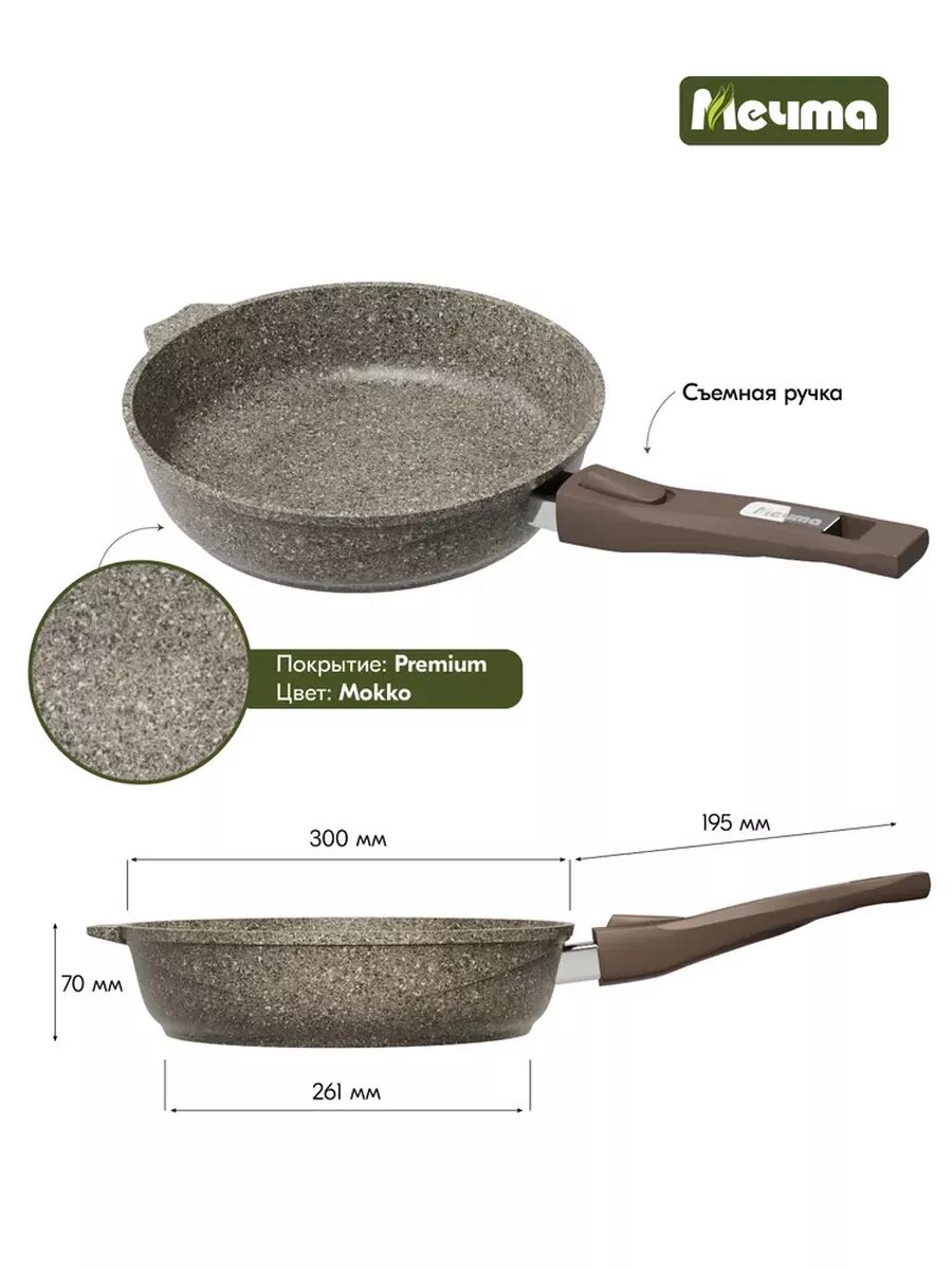 Сковорода "Мечта" 30см Премиум с антипригарным покрытием со съемной ручкой, можно мыть в посудомоечной машине