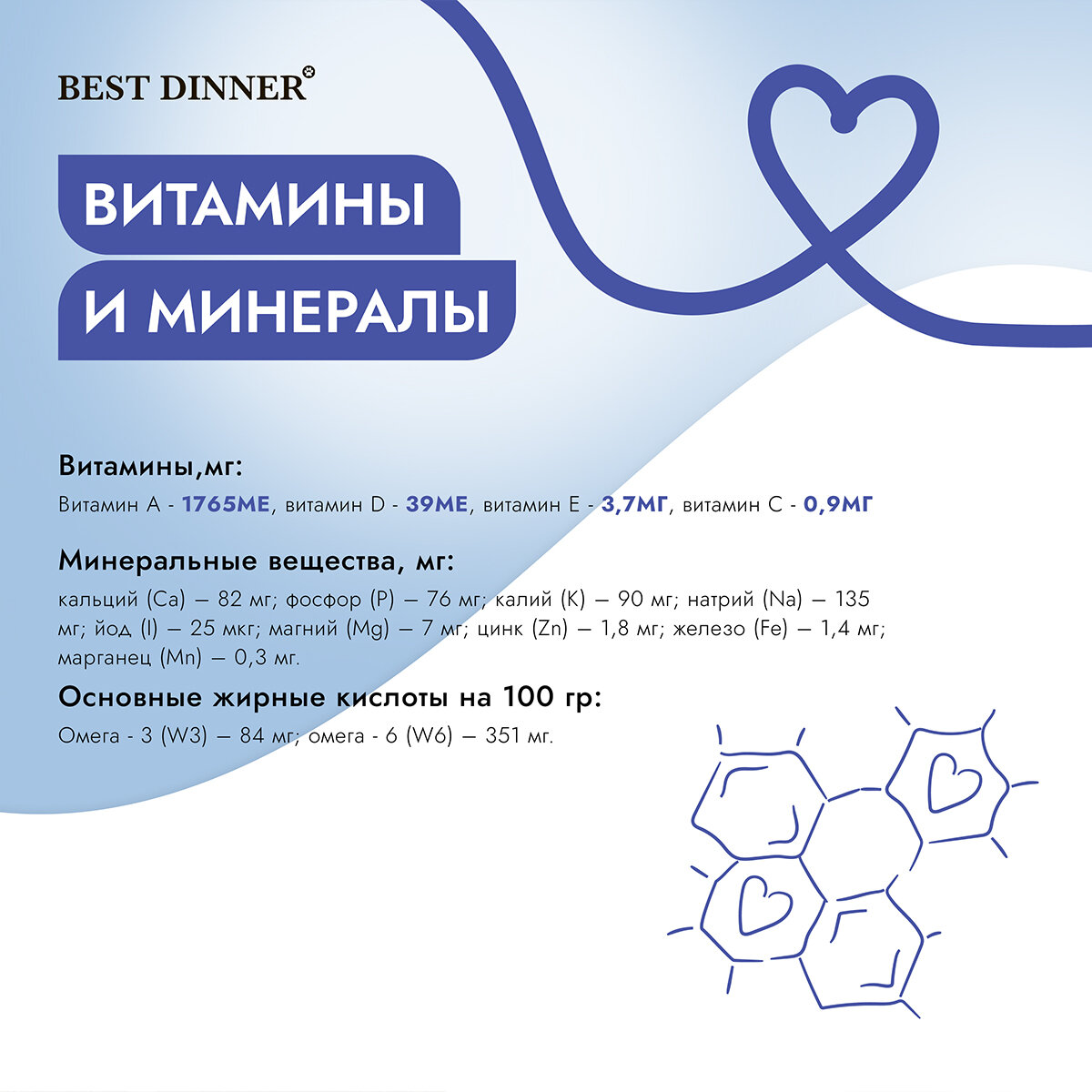 | Пищевая ценность | в 100 г: сырой протеин, не менее 12,0 г; сырой жир, не более 10,0 г; сырая зола, не более 2,0 г; поваренная соль 0,4–0,6 г; влага, не более 82% |