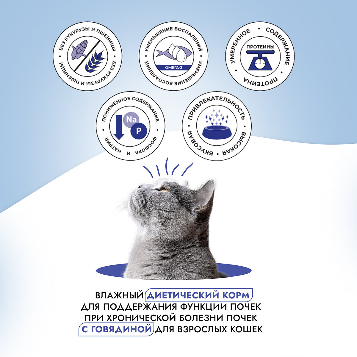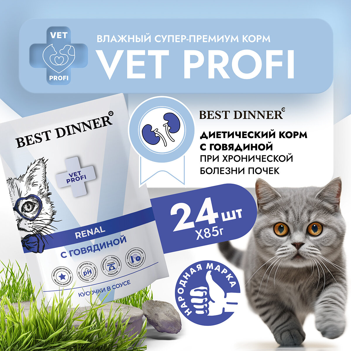 Купить Влажный корм для кошек Best Dinner VET PROFI Renal кусочки в соусе Говядина , 85 г х 24 шт для профилактики заболеваний почек, пауч (Бест Диннер)