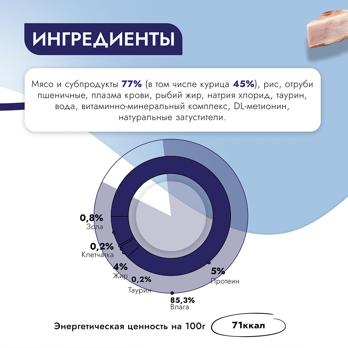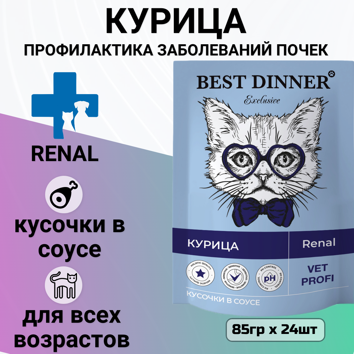 Best Dinner Exclusive Vet Profi Renal диетические паучи для взрослых кошек для профилактики заболеваний почек, с курицей, кусочки в соусе - 85 г х 24 шт