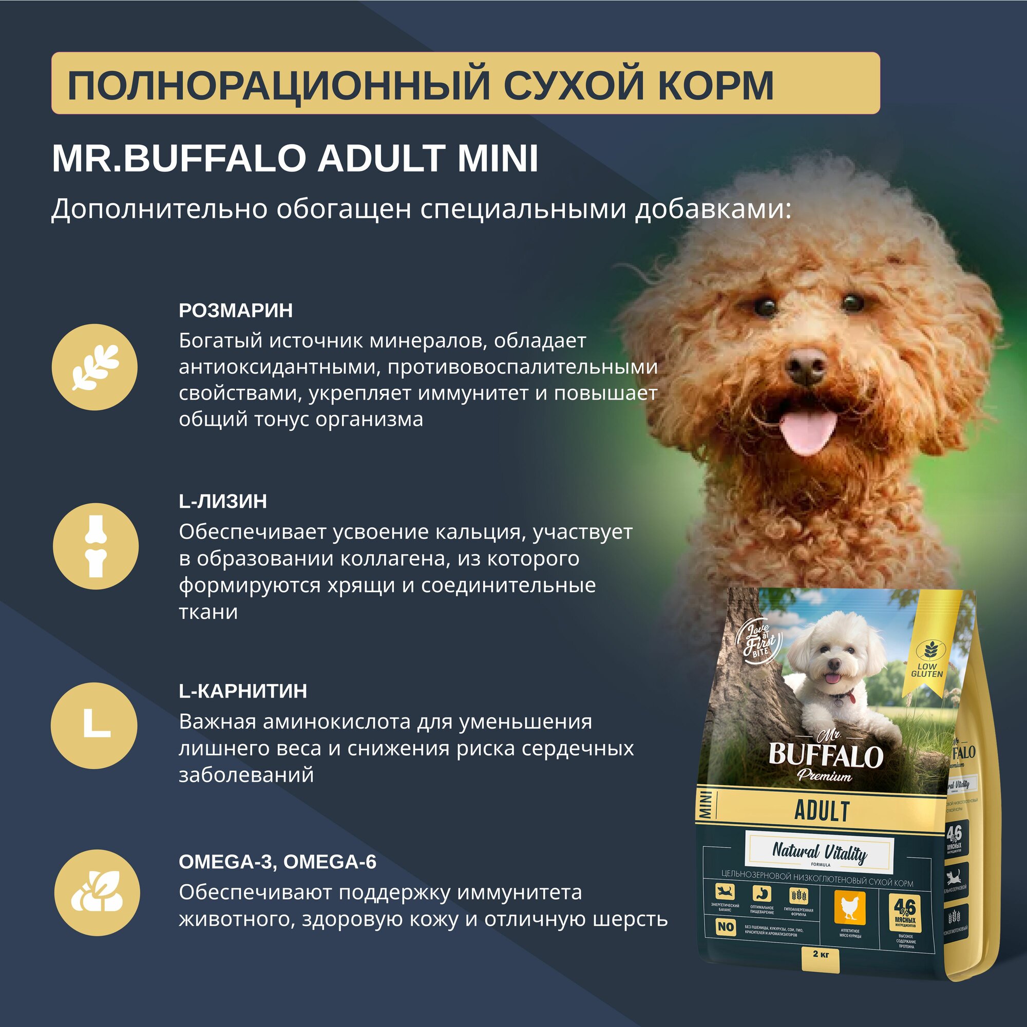 Mr.Buffalo Adult mini сухой корм для взрослых собак миниатюрных пород Курица, 2 кг.