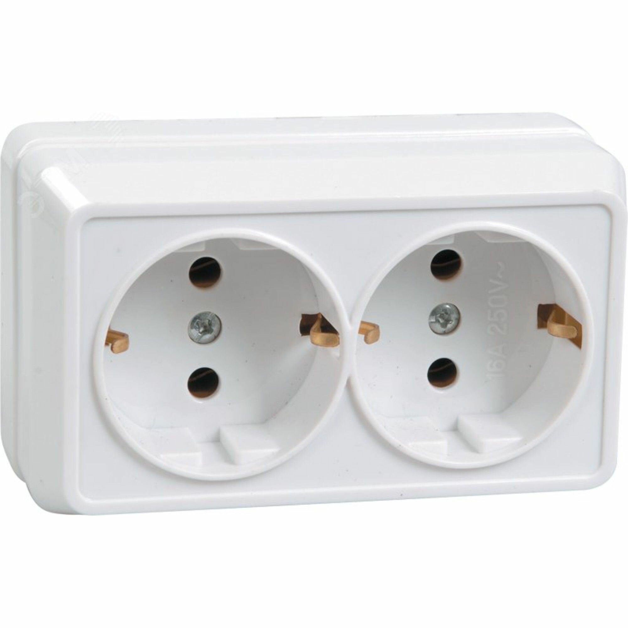 Розетка двойная накладная IEK Октава, с заземлением, 16 А, 250 В, IP20, белая