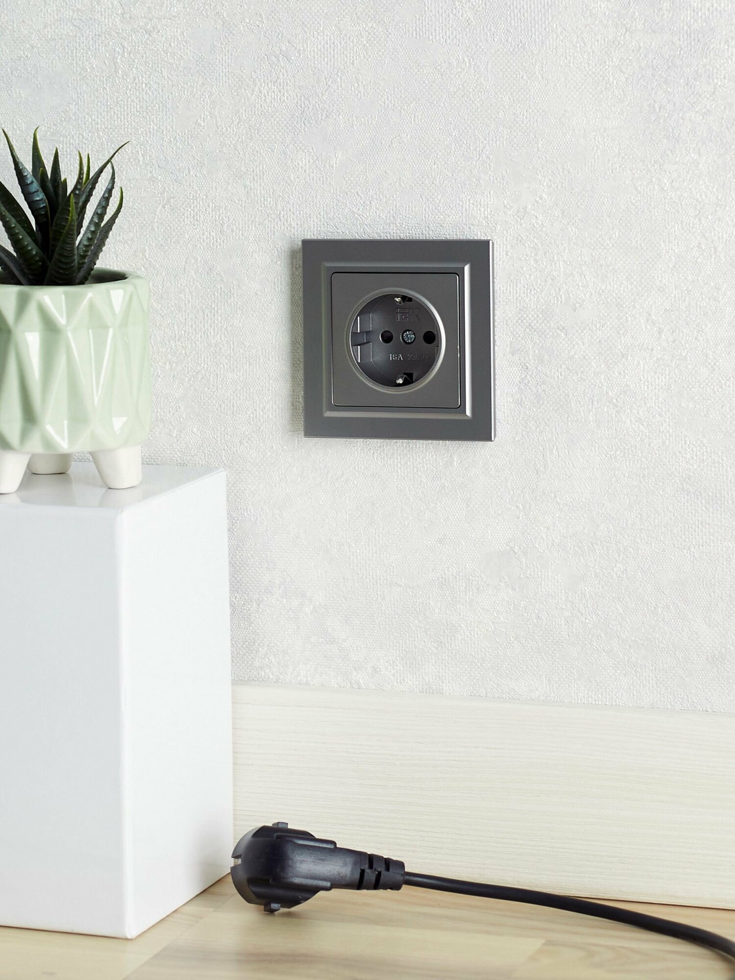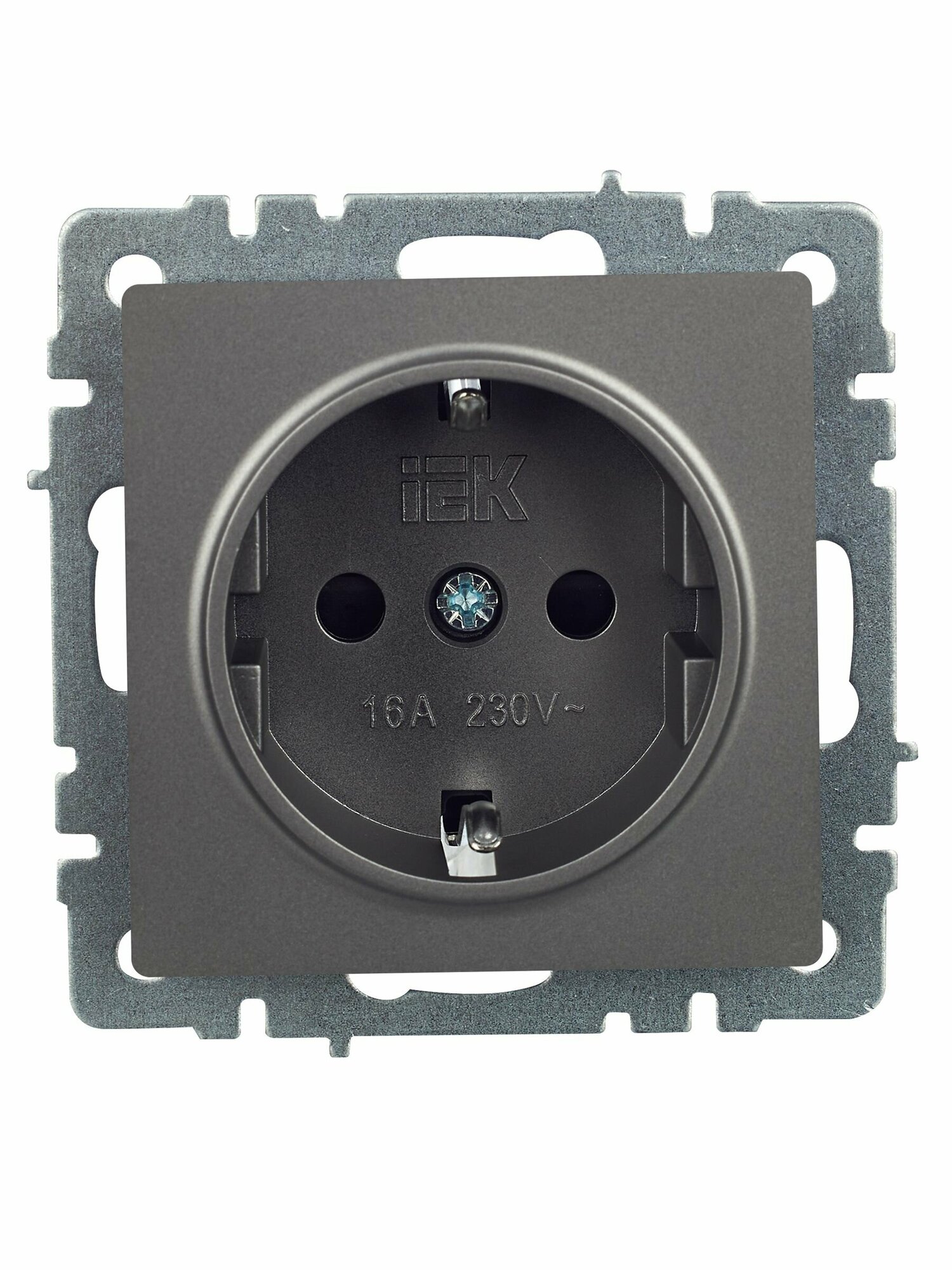 BRITE Розетка с заземлением с защитными шторками 16А РС14-1-0-БрГ графит | код BR-R14-16-K53 | IEK (3шт.в упак.)
