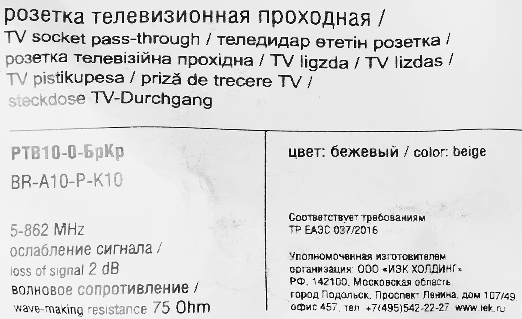 Ниже Вы можете прочитать отзывы на BRITE Розетка TV проходная РТВ10-0-БрКр бежевый | код BR-A10-P-K10 | IEK ( 1шт ), ознакомится с подробными характеристиками, посмотреть интересные обзоры и фотографии на BRITE Розетка TV проходная РТВ10-0-БрКр бежевый | код BR-A10-P-K10 | IEK ( 1шт ).