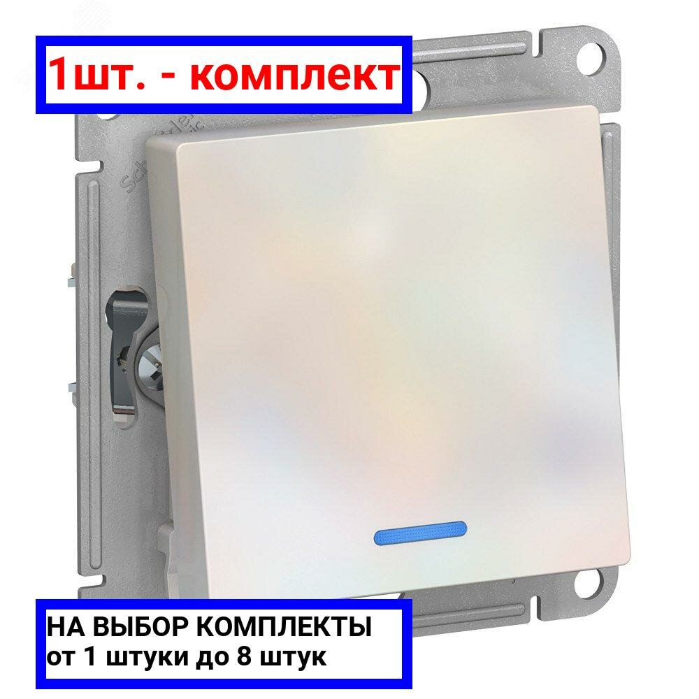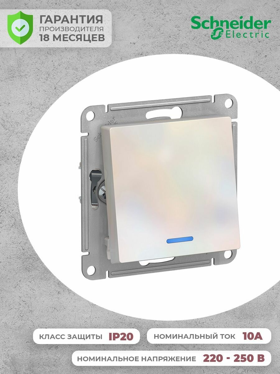 Переключатель одноклавишный встраиваемый Schneider Electric Atlasdesign, 10 A, с подсветкой, жемчуг