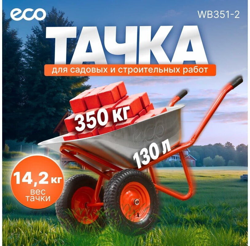 Тачка садовая, строительная ECO WB351-2 (130л, 350кг, 2 пневмоколеса 4.00-8)