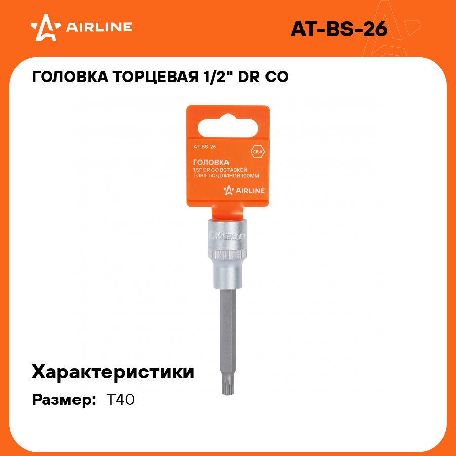 ATBS26 AIRLINE Головка 1/2 DR со вставкой TORX T40 длиной 100мм (AT-BS-26)