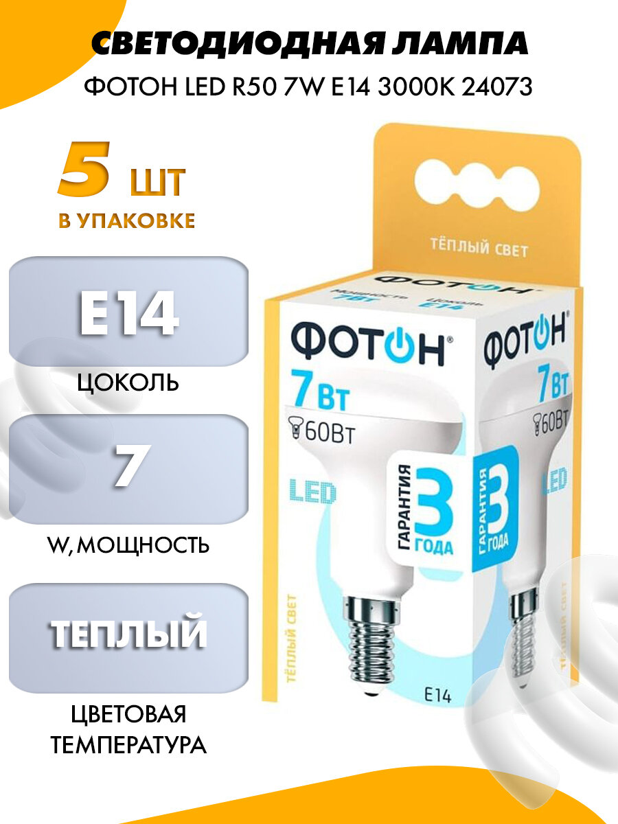 Фотон Лампа светодиодная LED R50 7W E14 3000K 24073 интересное: