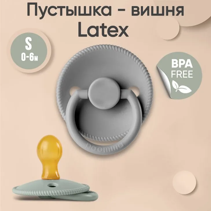 СохранитьПустышка Paomma с соской из натурального латекса, S (0-6 мес), Light grey интересное: