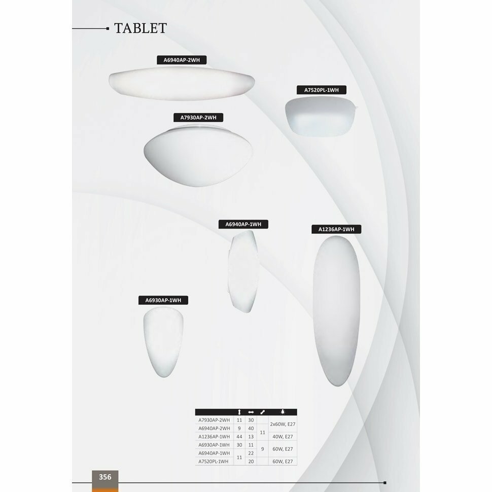 Светильник для ванной Arte Lamp TABLET A6930AP-1WH, Белый, E27 60