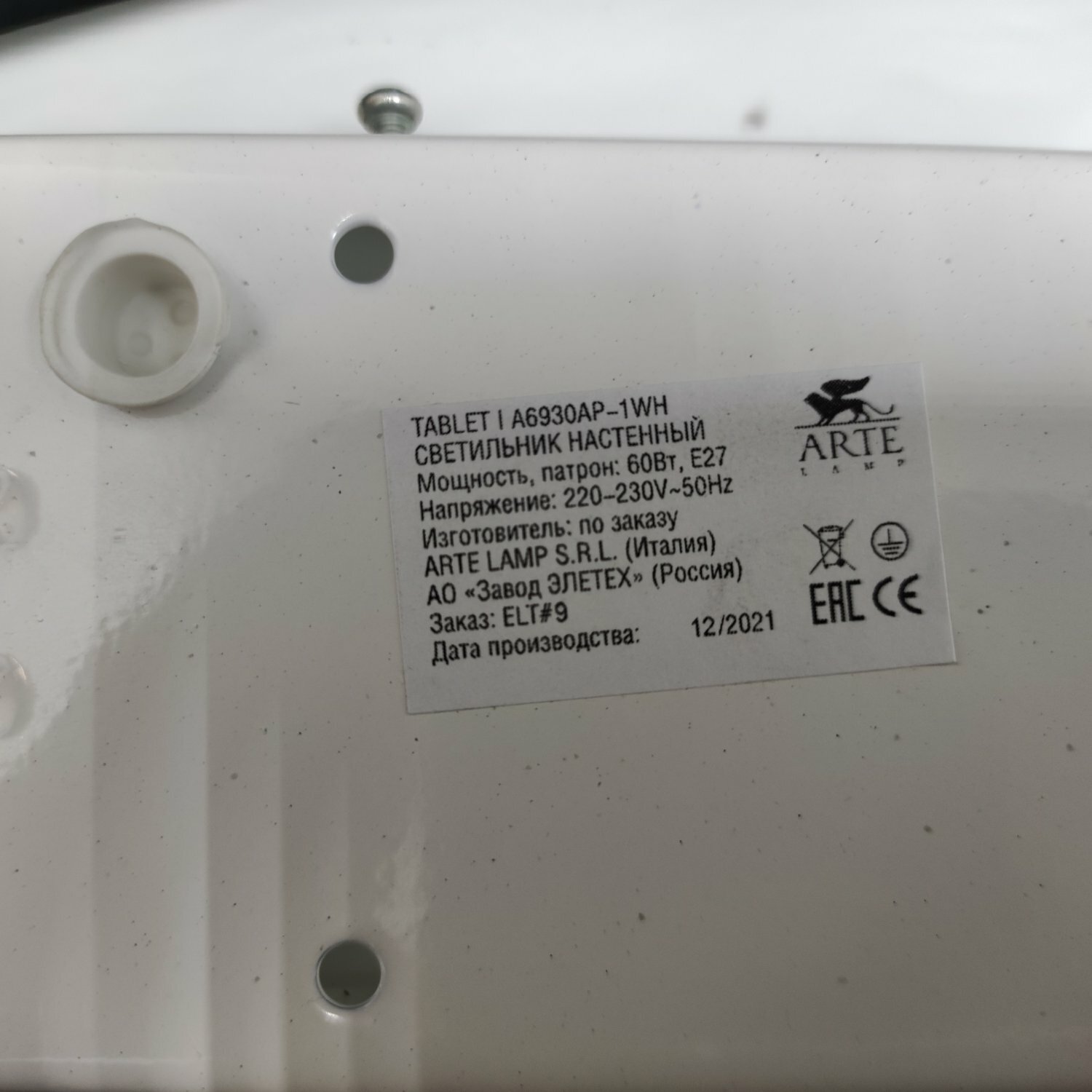 Бра Arte Lamp Tablet A6930AP-1WH интересное: