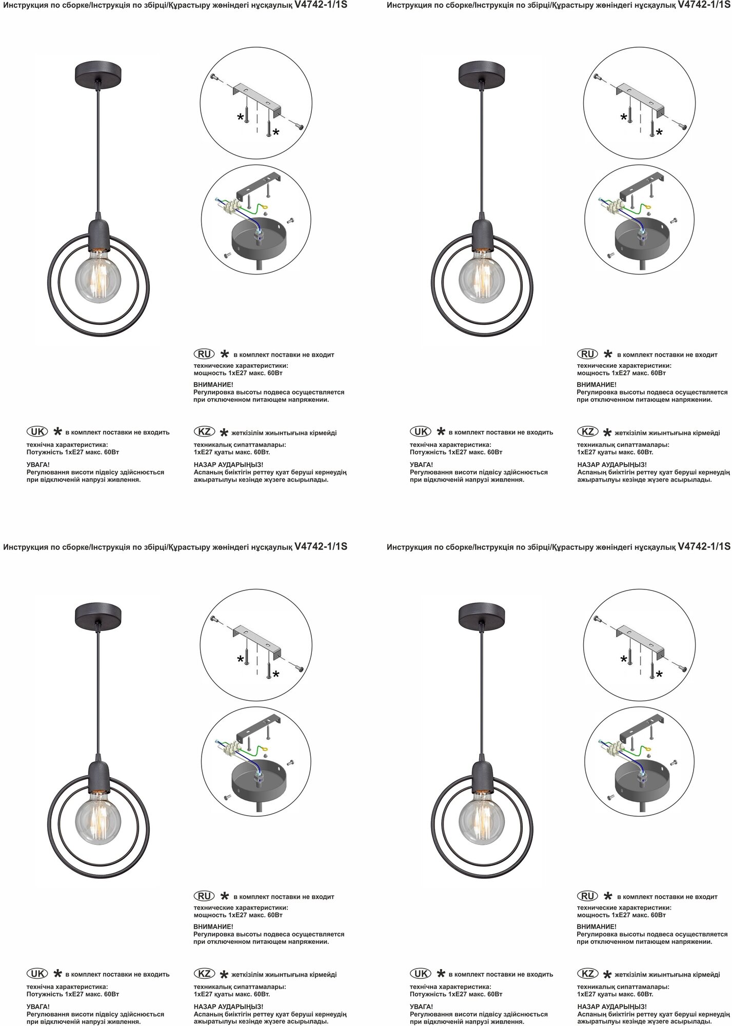 Люстра V4742-1/1S, 1хE27 макс. 60Вт