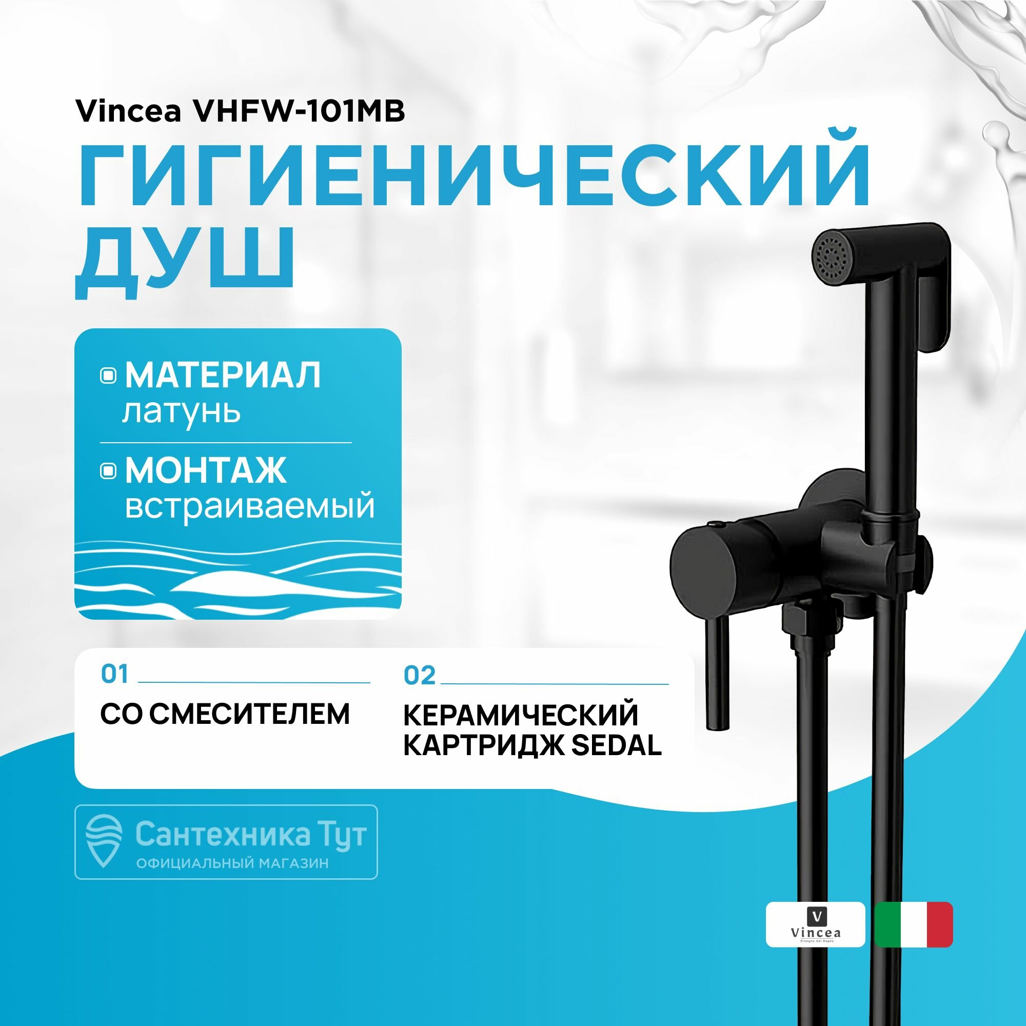 Гигиенический душ Vincea VHFW-101MB из латуни в комплекте со смесителем, черный