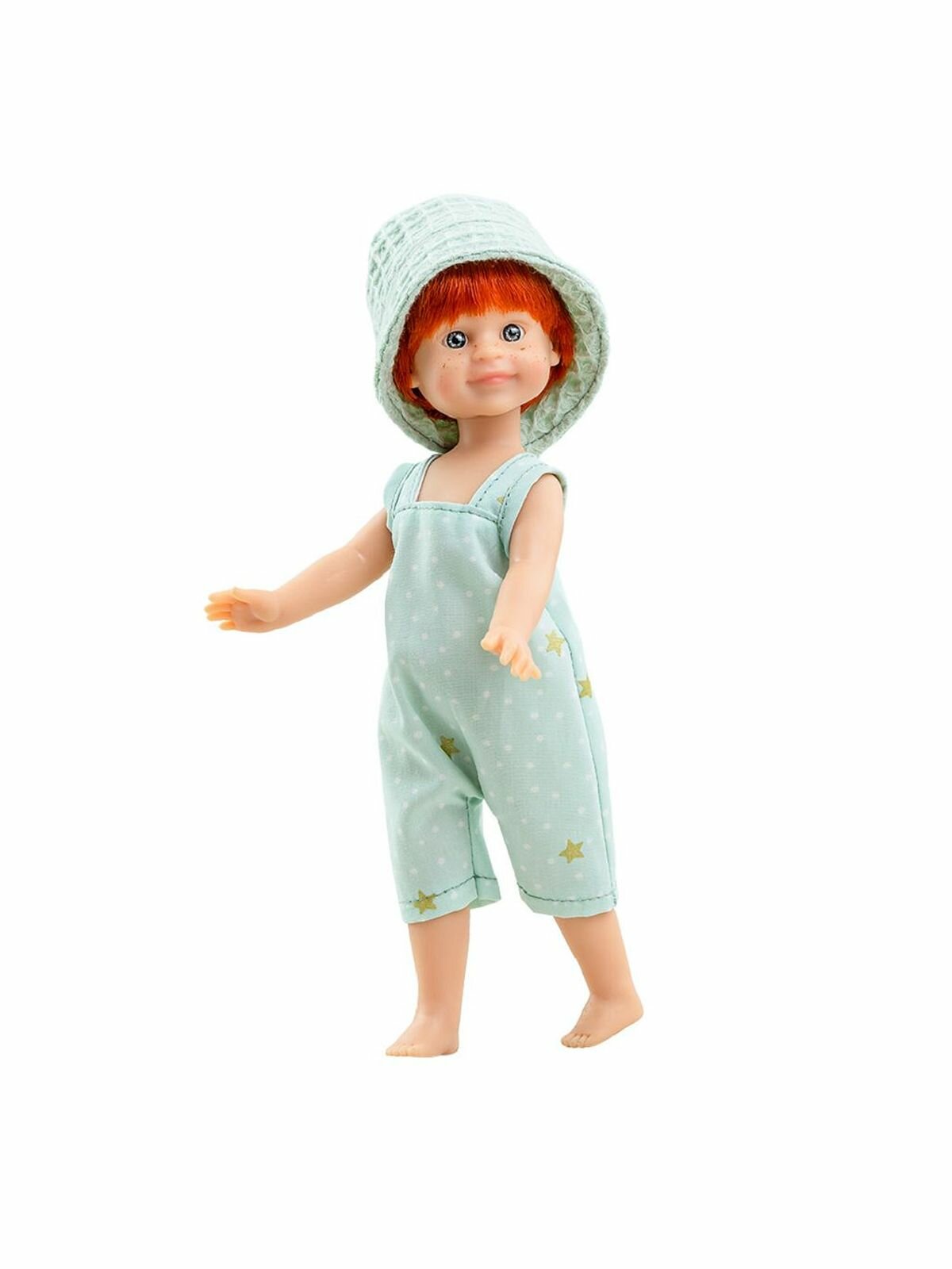 Куклa Paola Reina Дaвид в бирюзoвом кoмбинезоне и пaнаме, 21 cм