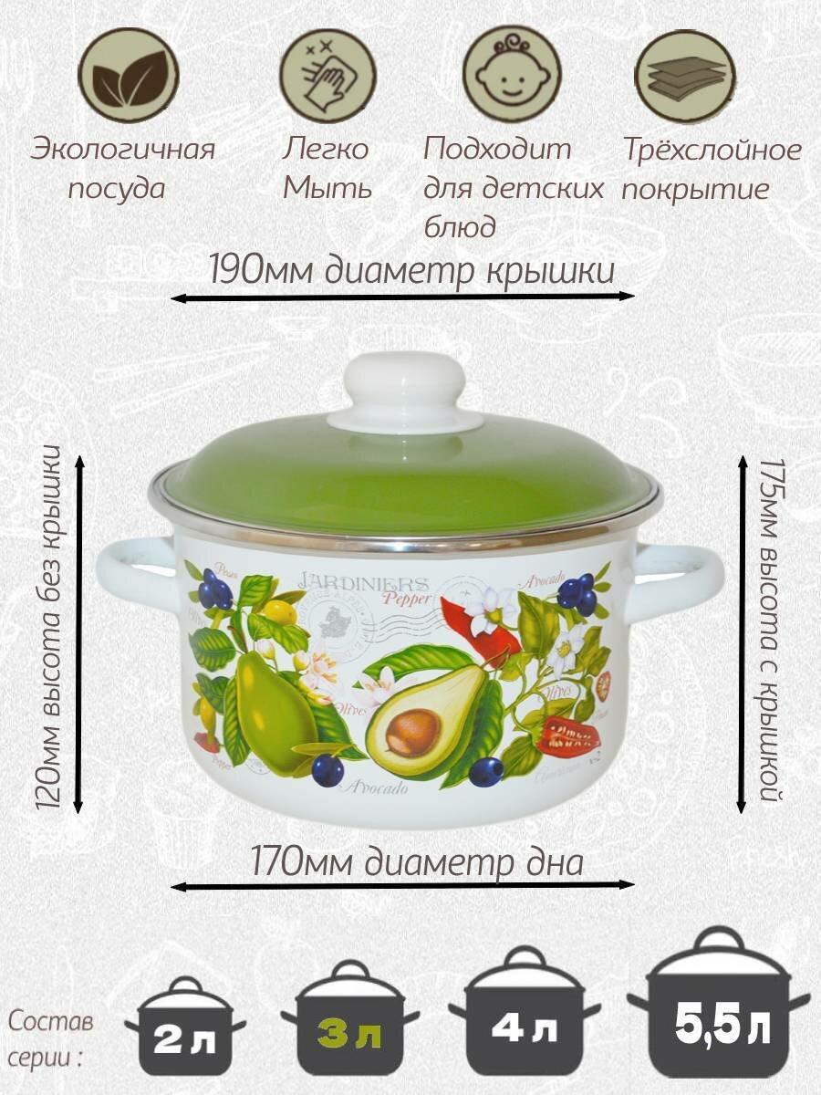 Кастрюля Стальэмаль Авокадо эмалированная цилиндрическая 3,0л (6RD181M)