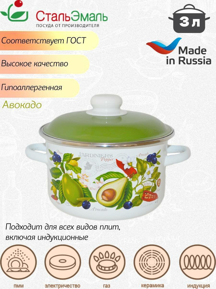 Кастрюля эмалированная 4л СтальЭмаль Авокадо