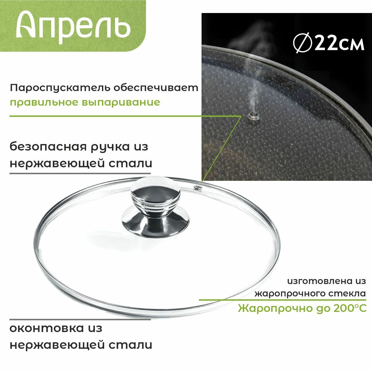 Сковорода Апрель 22 см с антипригарным покрытием со съемной ручкой и крышкой