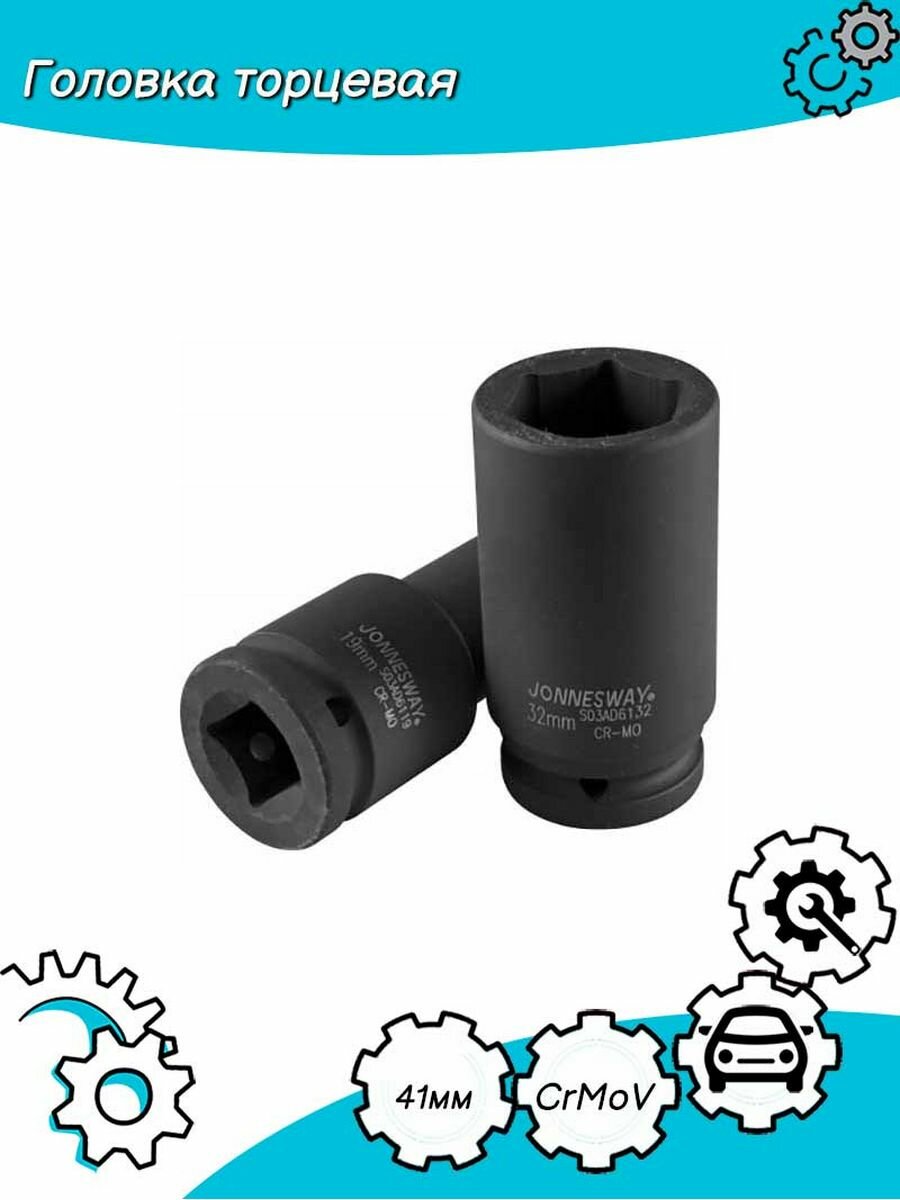 Торцевая головка ударная глубокая 34 dr, 41 мм, jonnesway, s03ad6141