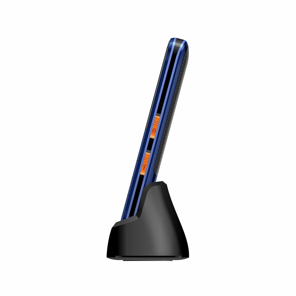 | Плюсы: | Достаточно удобный, есть фонарик, стационарное зарядное устройство, при установке в которое издается сигнал, что зарядка началась. |
