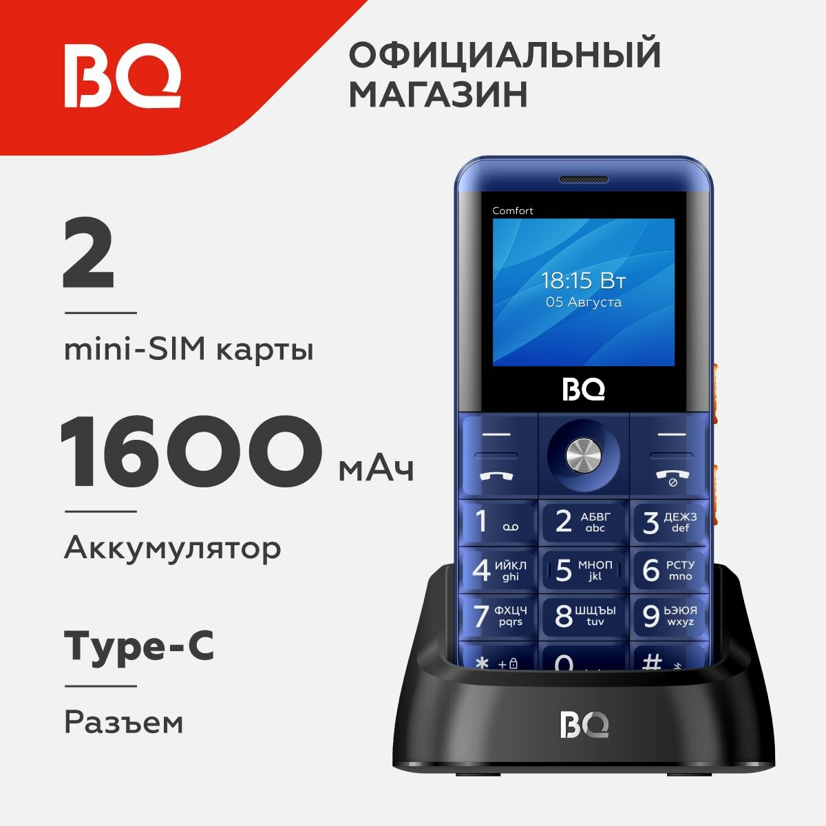 Телефон BQ 2006 Comfort, синий/черный