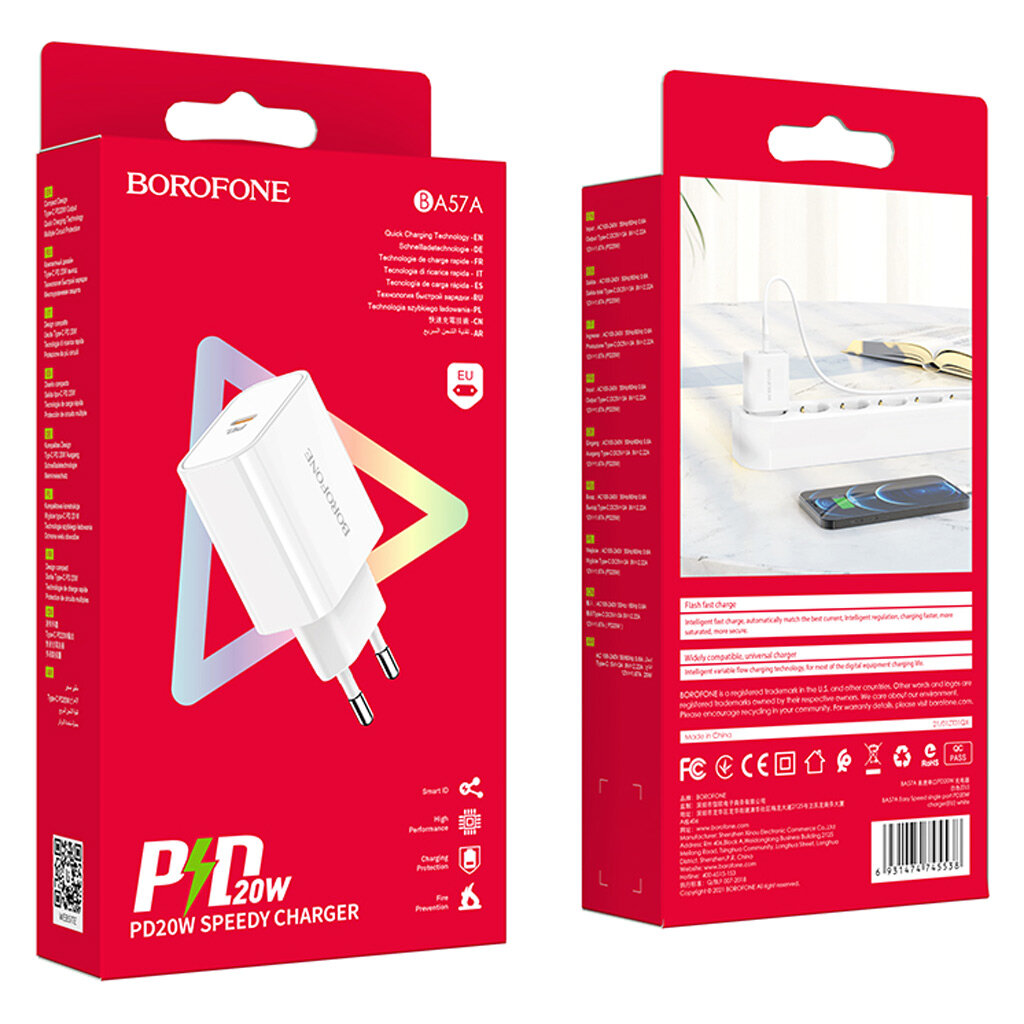 Зарядное устройство Borofone BA57A Easy Speed, белый (PD, 1xUSB-C, 20W)