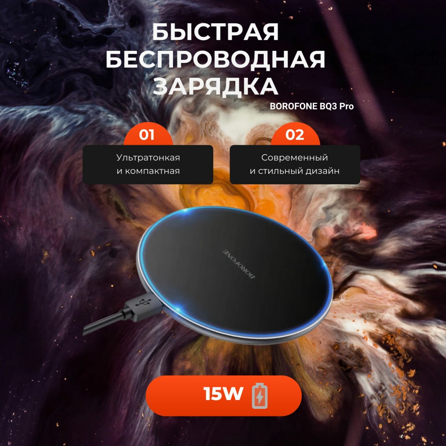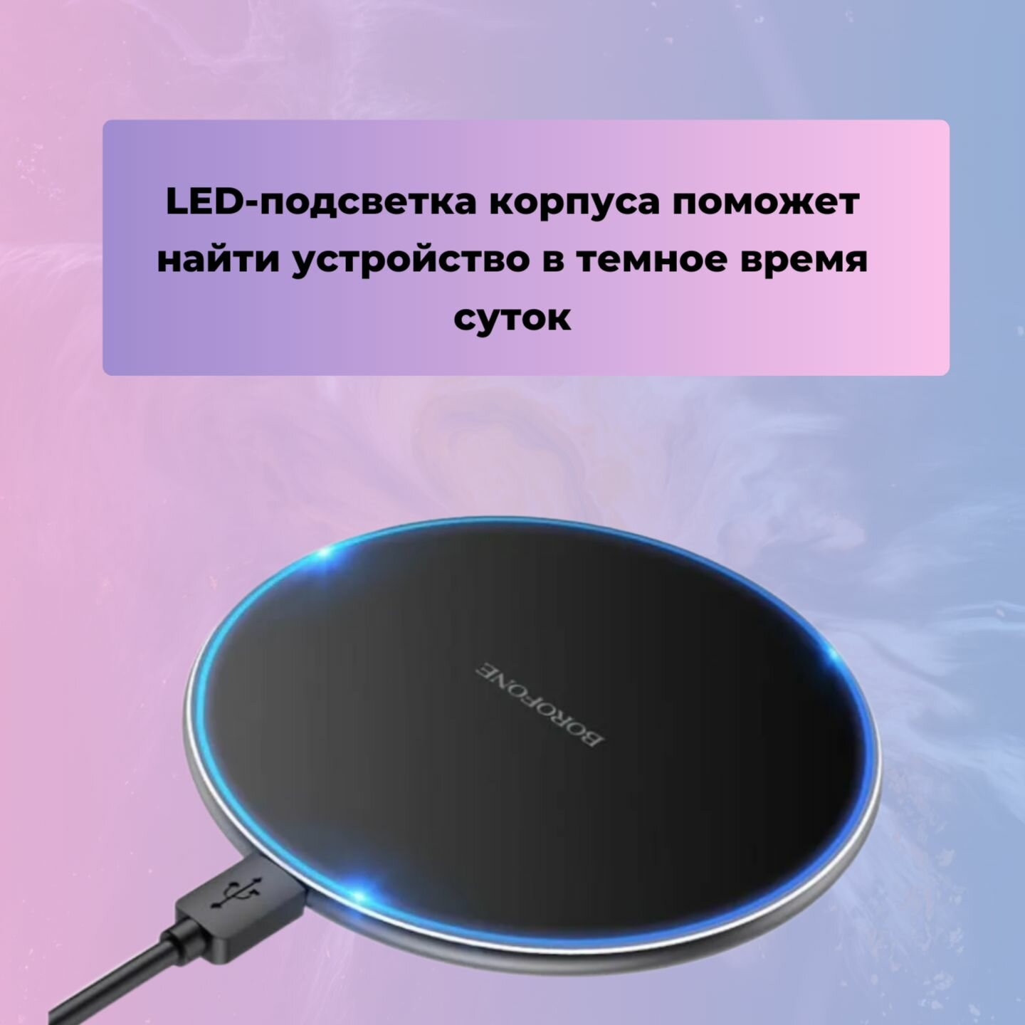 Беспроводное зарядное устройство Borofone BQ3 Pro (15W, быстрая зарядка, подсветка) <черный>