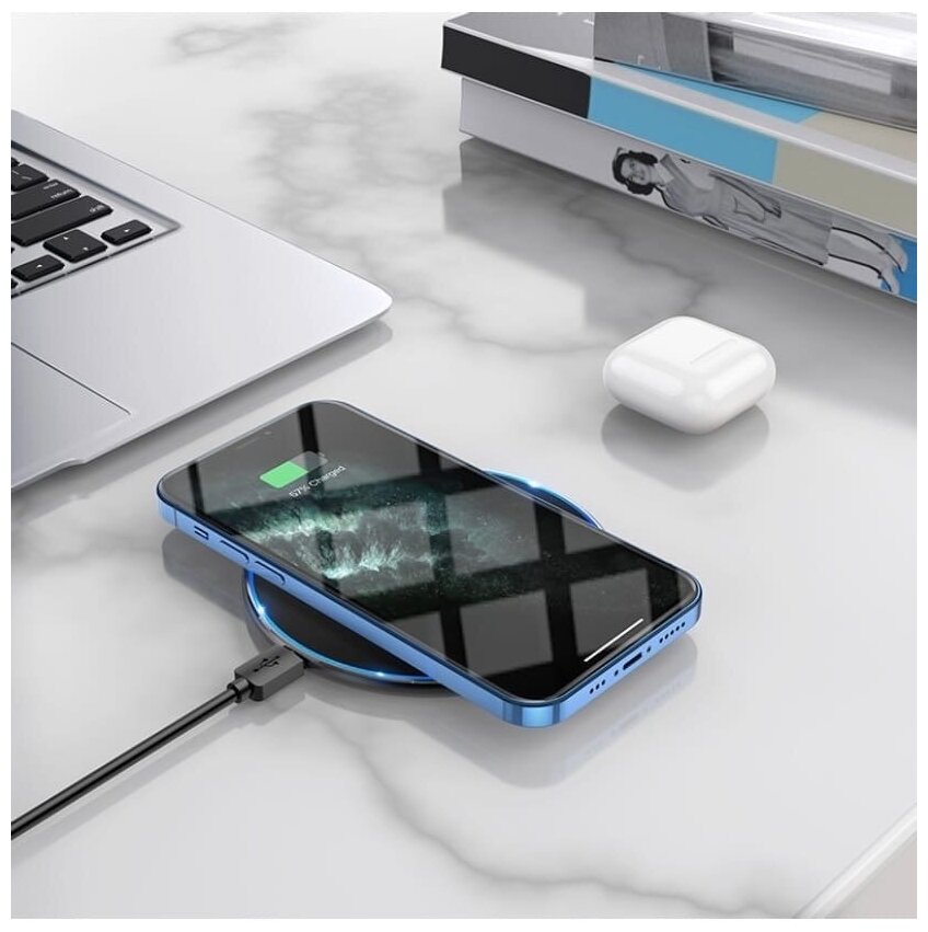 Беспроводное зарядное устройство Borofone быстрая зарядка 15W MagSafe ультратонкое с подсветкой черное BQ3 Pro 15W