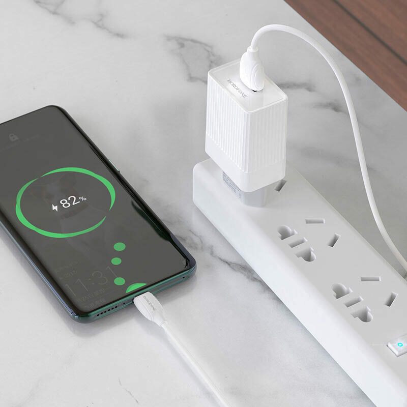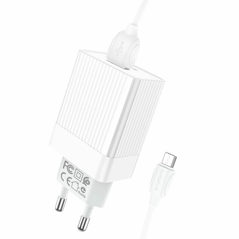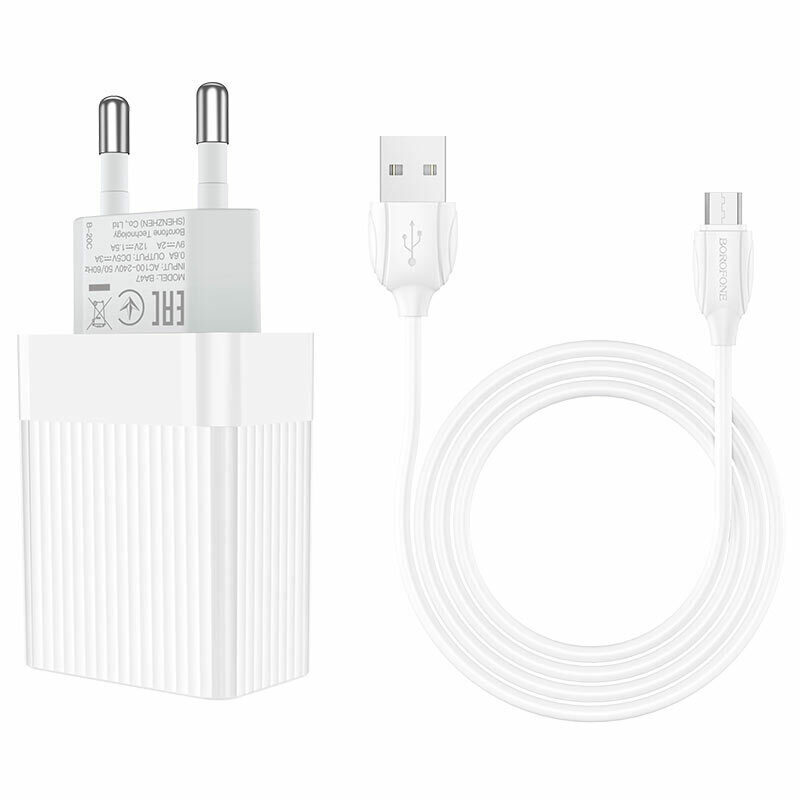 Зарядное устройство Borofone BA47A Mighty 1xUSB + кабель MicroUSB White 6931474728302