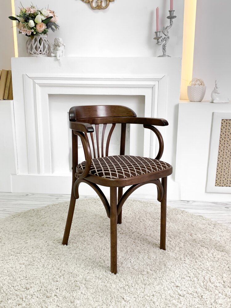 Венский мягкий Стул (каркас темный тон + ткань brown, коричневый ромб)
