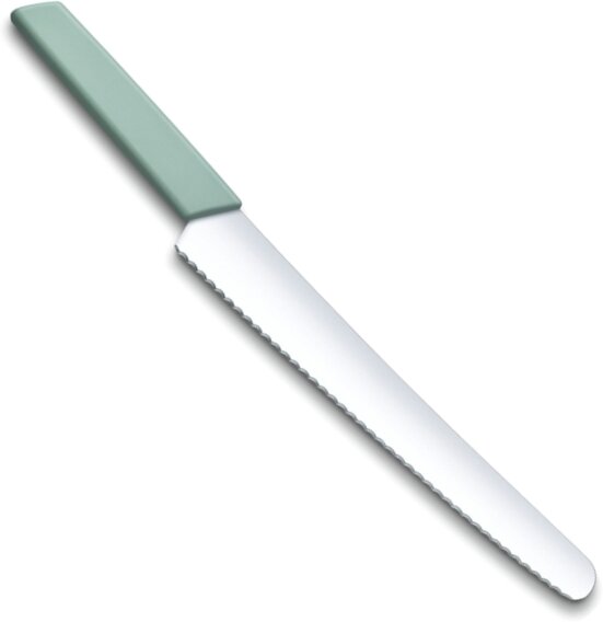 Ниже Вы можете прочитать отзывы на Нож кухонный Victorinox Swiss Modern, для хлеба, 260мм, заточка серрейтор, стальной, зеленый [6.9076.26w44b], ознакомится с подробными характеристиками, посмотреть интересные обзоры и фотографии на Нож кухонный Victorinox Swiss Modern, для хлеба, 260мм, заточка серрейтор, стальной, зеленый [6.9076.26w44b].