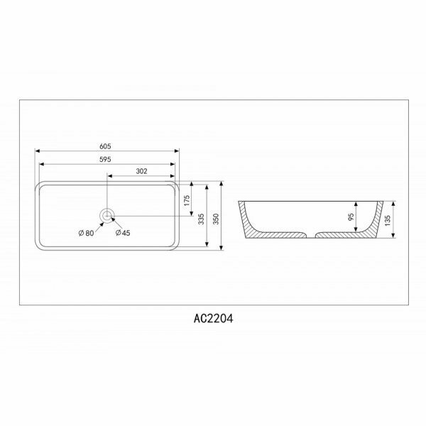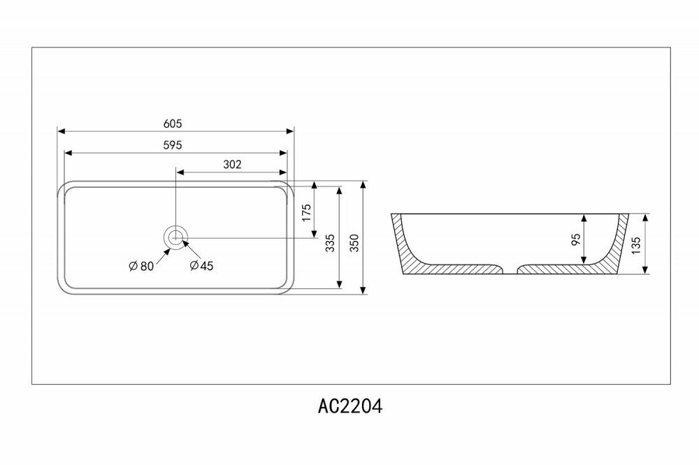 Раковина накладная Abber Rechteck белая 605х350х135 мм AC2204