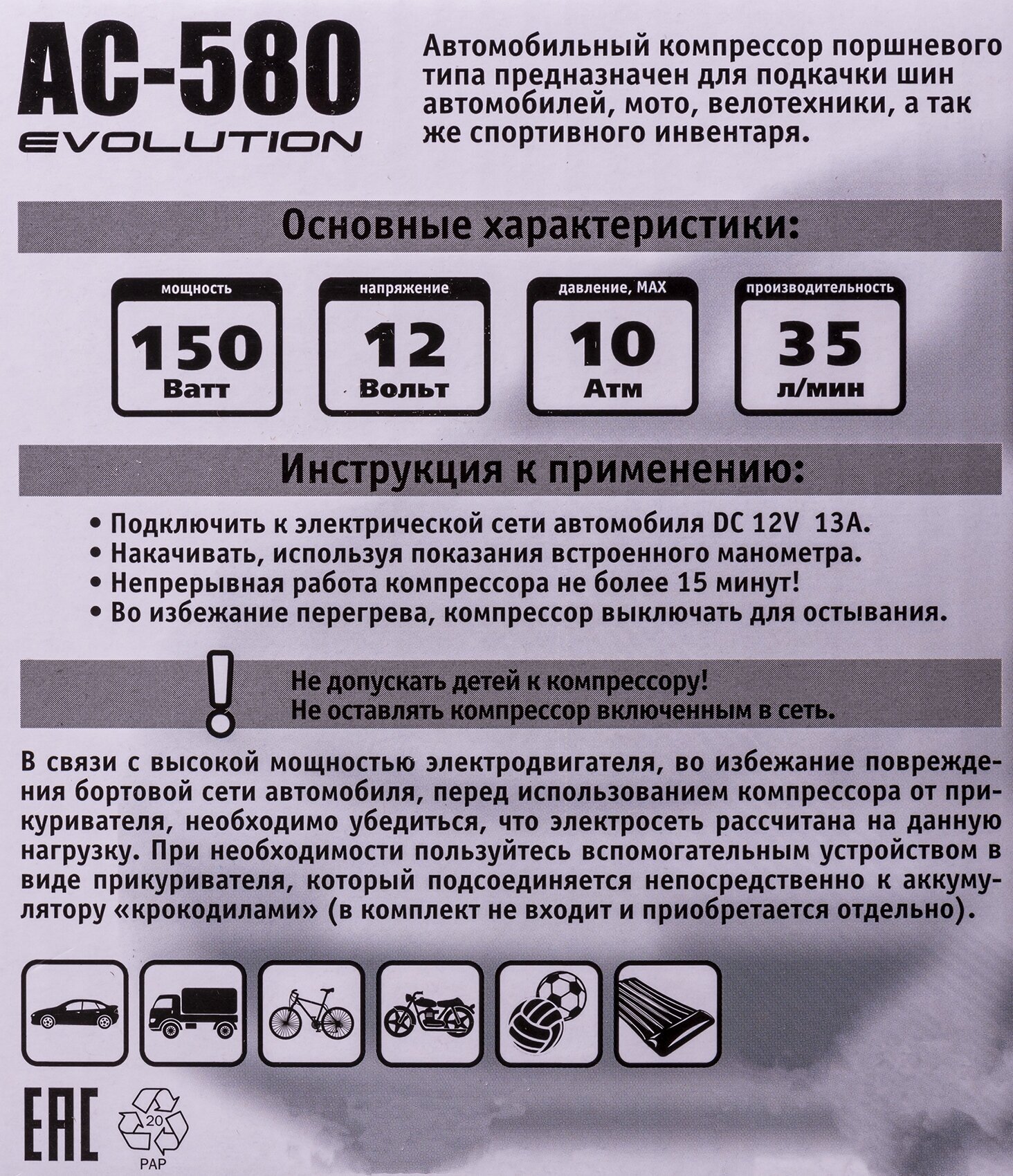 СохранитьКомпрессор автомобильный City UP АС-580 Evolution / насос автомобильный 35 л / мин интересное: