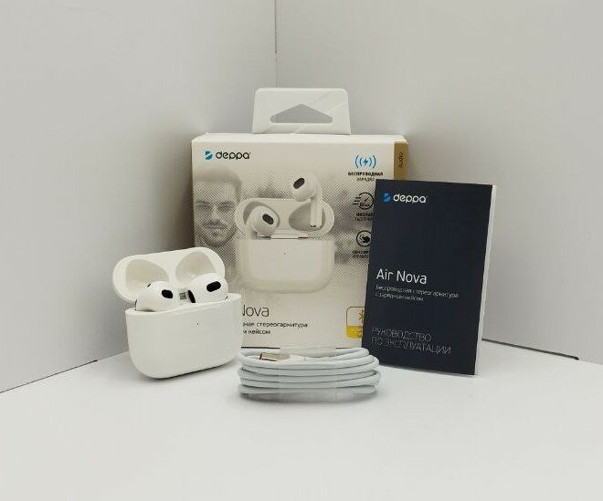 СохранитьБеспроводные наушники с микрофоном Air Nova, TWS, BT 5.3, 300 мАч, QI, белый, Deppa интересное: