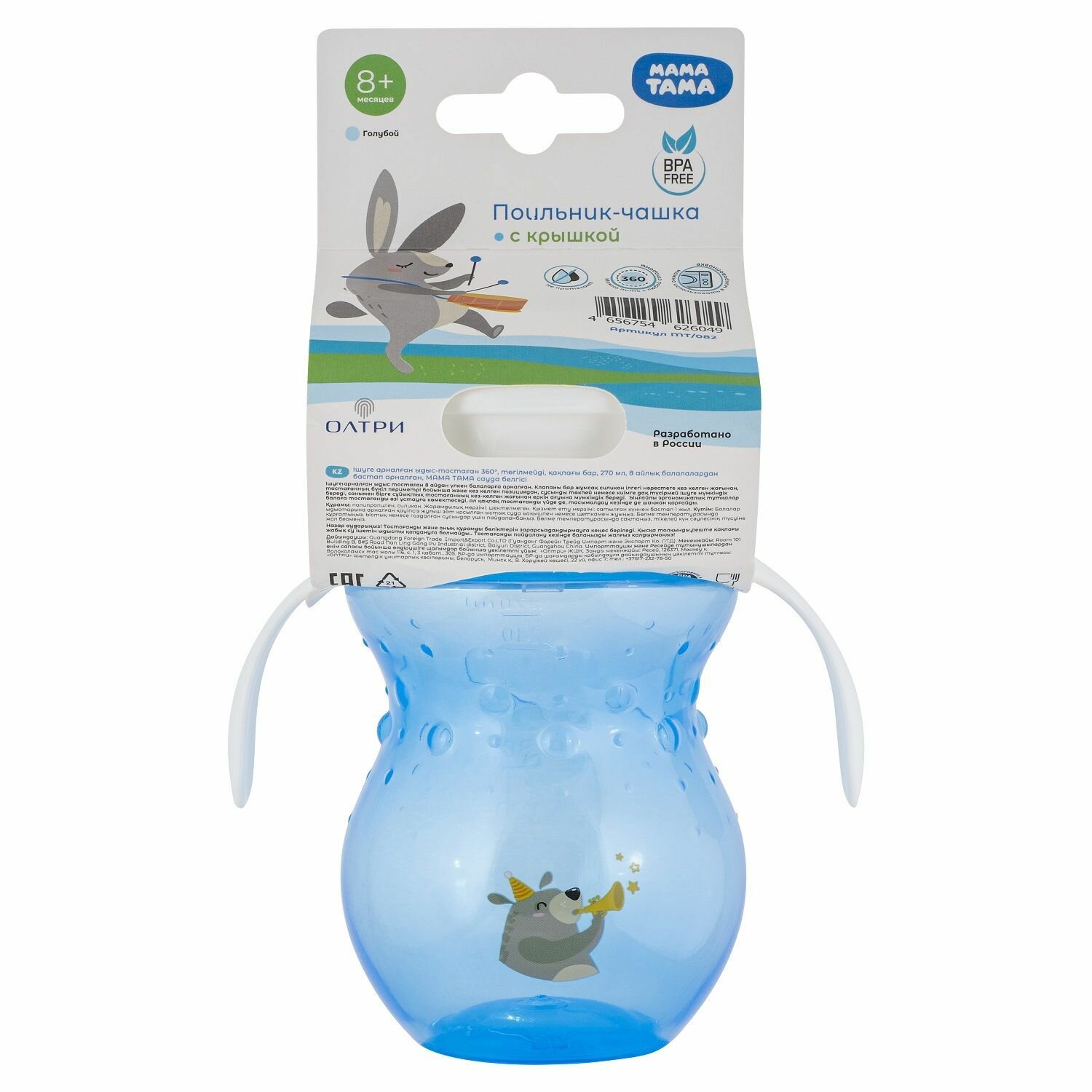 Поильник непроливайка мама тама с силиконовым носиком 6мес.+, 270 мл., цвет:синий