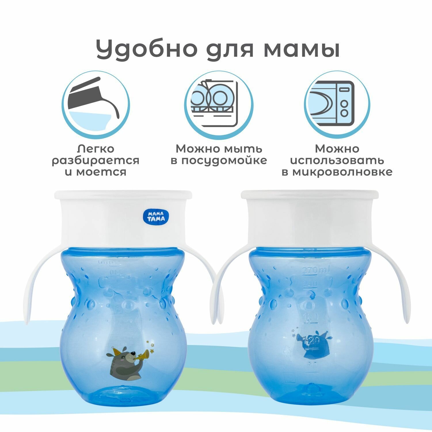 Купить Поильник детский непроливайка с ручками 270 мл мама тама голубой