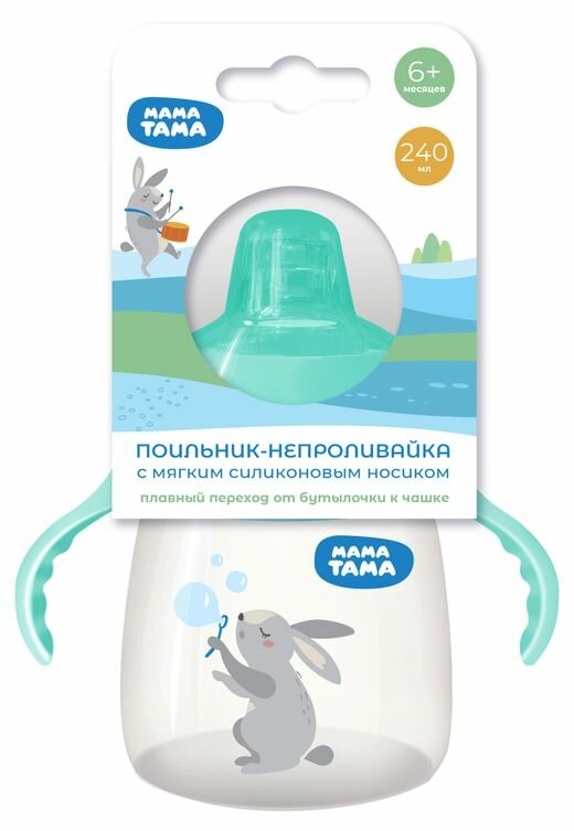 Купить Поильник-непроливайка мама тама с силиконовым носиком 6мес.+, 240 мл., цвет: мятный