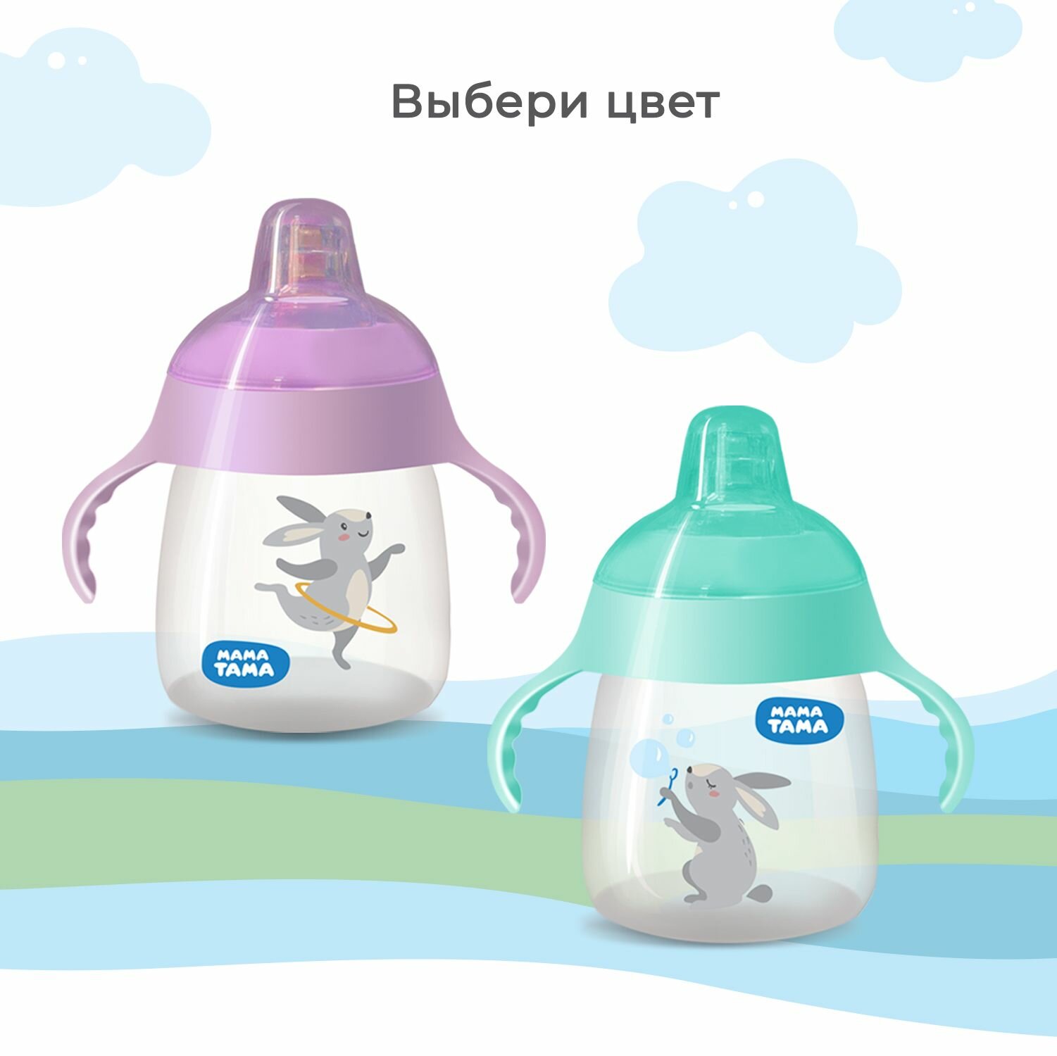 Поильник детский непроливайка с ручками 270 мл мама тама голубой