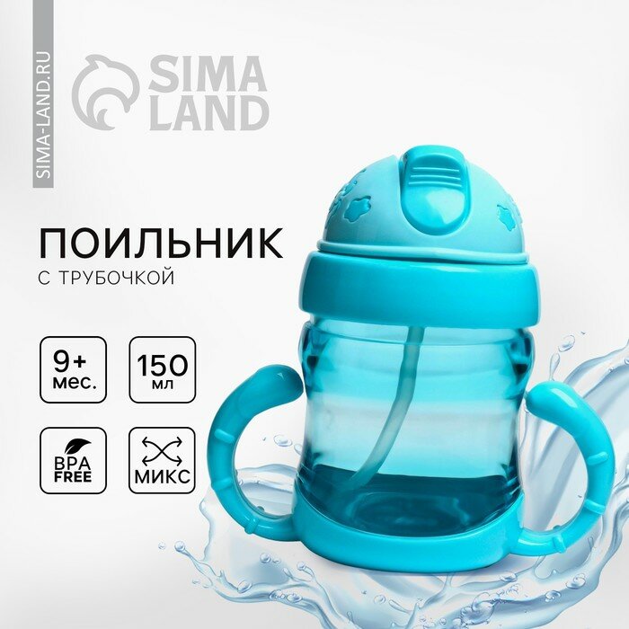 Поильник с трубочкой, 150 мл, от 9 мес., цвета микс 1578620