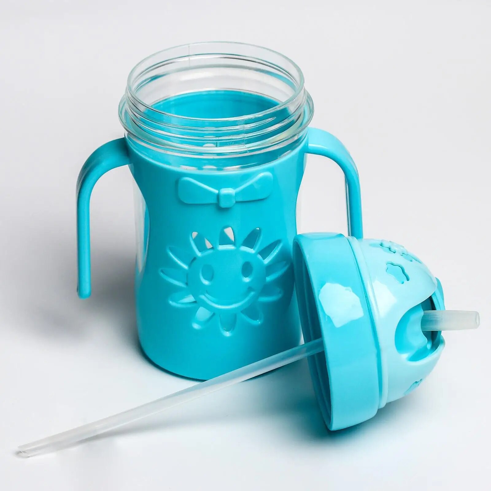 Поильник с трубочкой «Солнышко» со сдвигаемой крышкой, 300 мл., с ручками, цвета микс