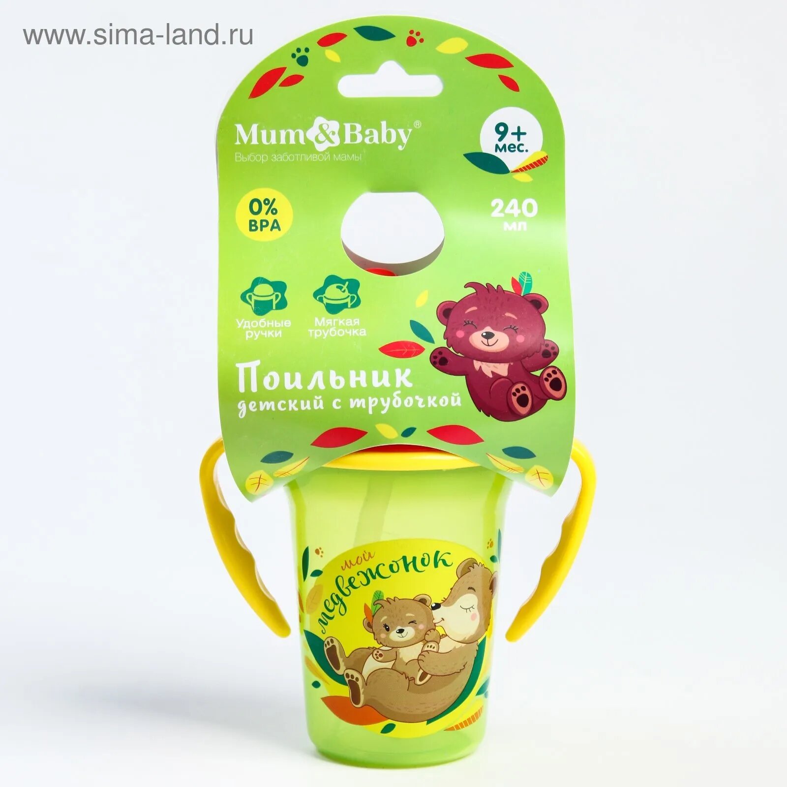 Поильник с трубочкой Mum&Baby Мой медвежонок 4594872, 240 мл зеленый