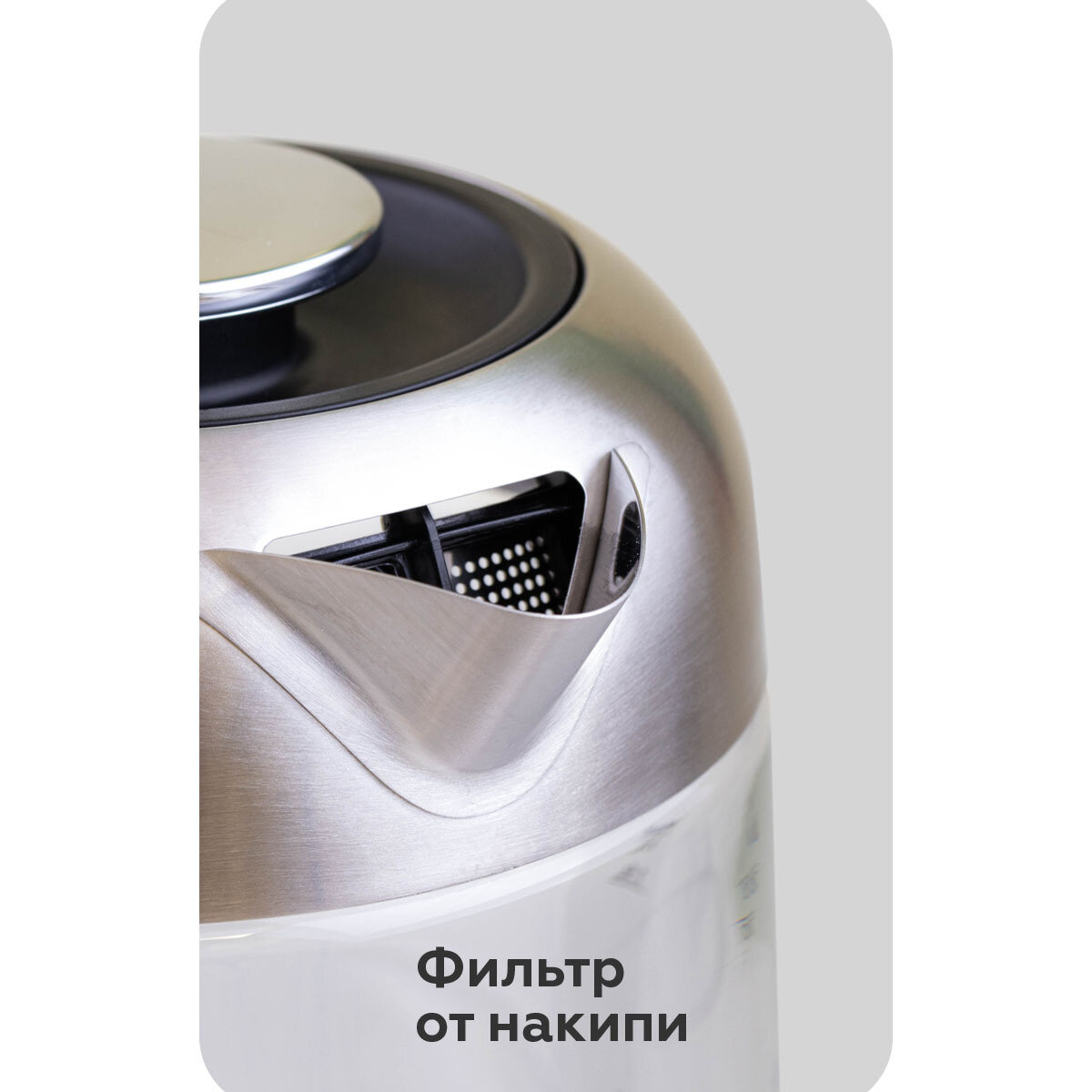 Чайник электрический BQ KT1703G, стекло, 1.7 л, 2200 Вт, чёрно-серебристый