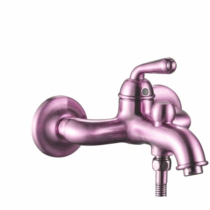 Однорычажный смеситель для ванны с душевой лейкой и коротким изливом Rose латунь, ретро