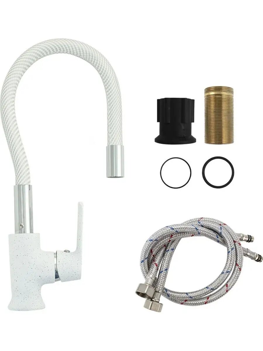 Смеситель кухонный BRIMIX с гибким изливом, шаровый, белый