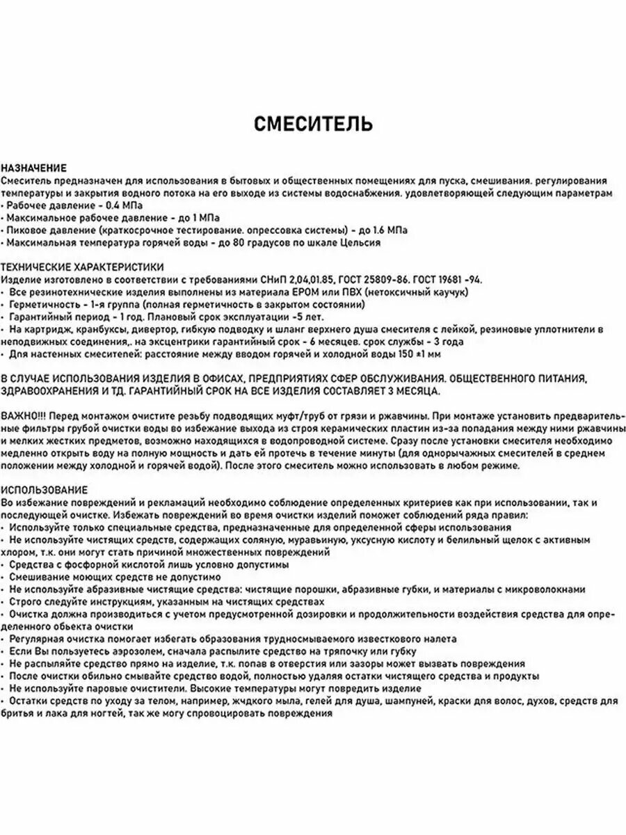 | Комплектация | Смеситель, подводка, комплект прокладок |