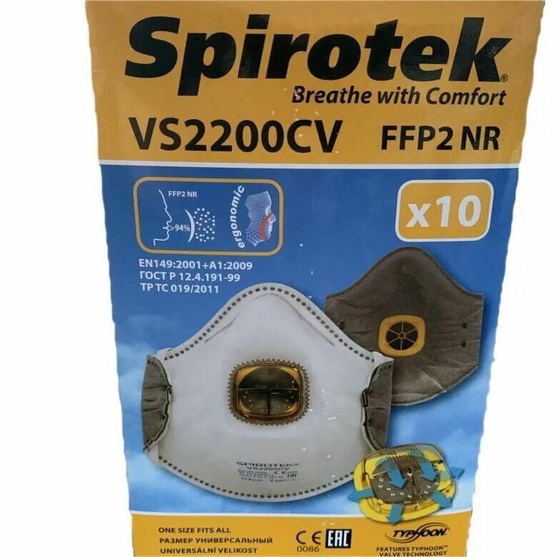 Респиратор Spirotek VS2200CV, 10 шт.