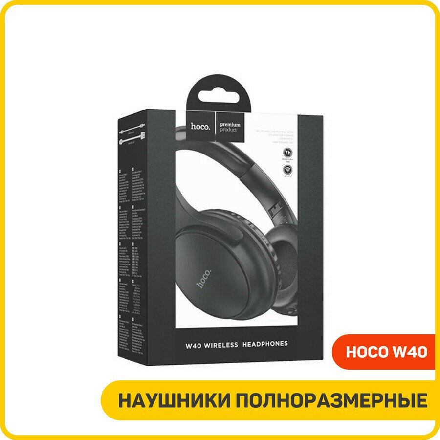 Наушники беспроводные W40 hoco с микрофоном, большие / с разъёмом для флешки, черный