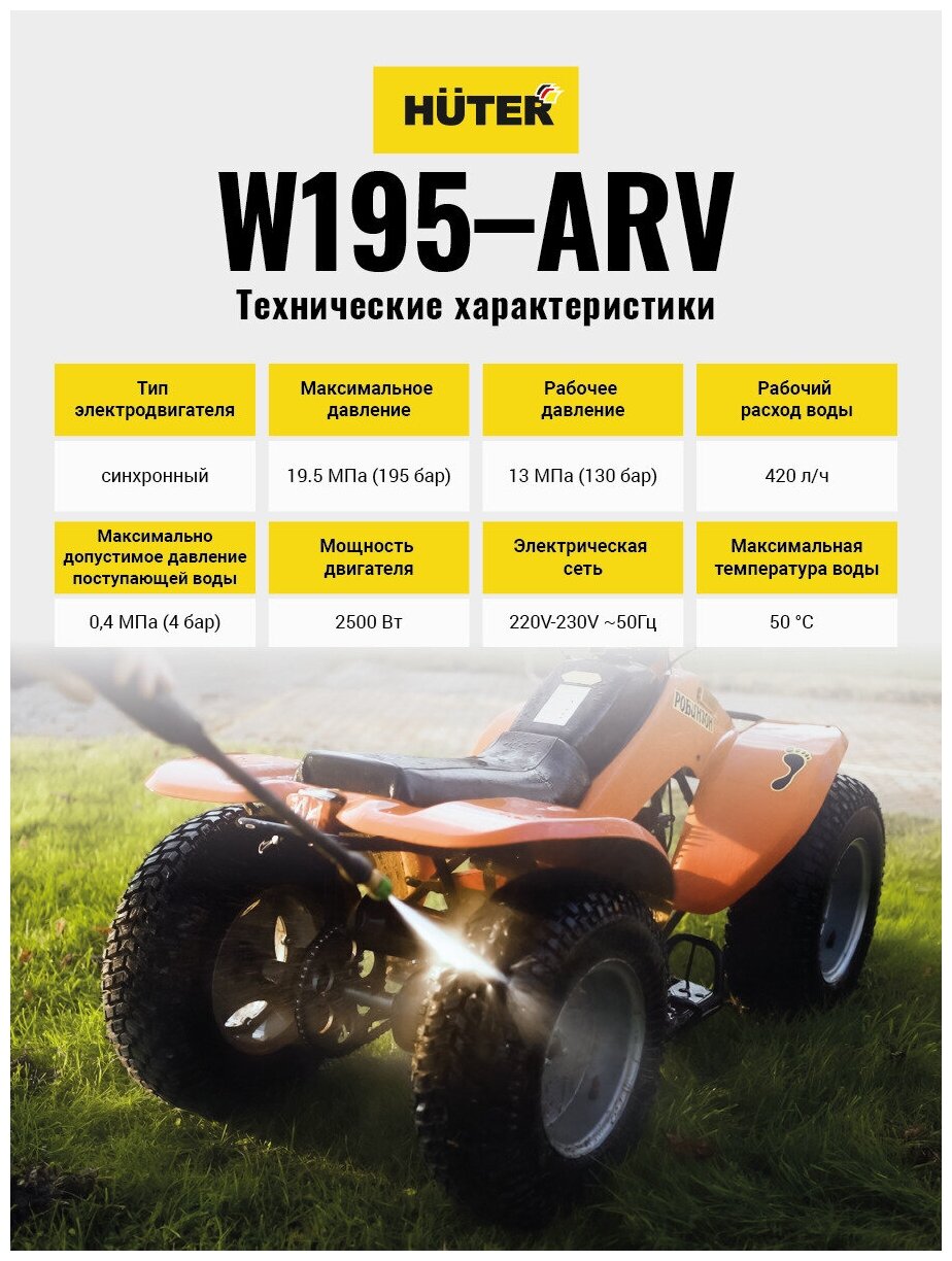 Мойка высокого давления Huter W195-ARV, 2500 Вт, 195 бар