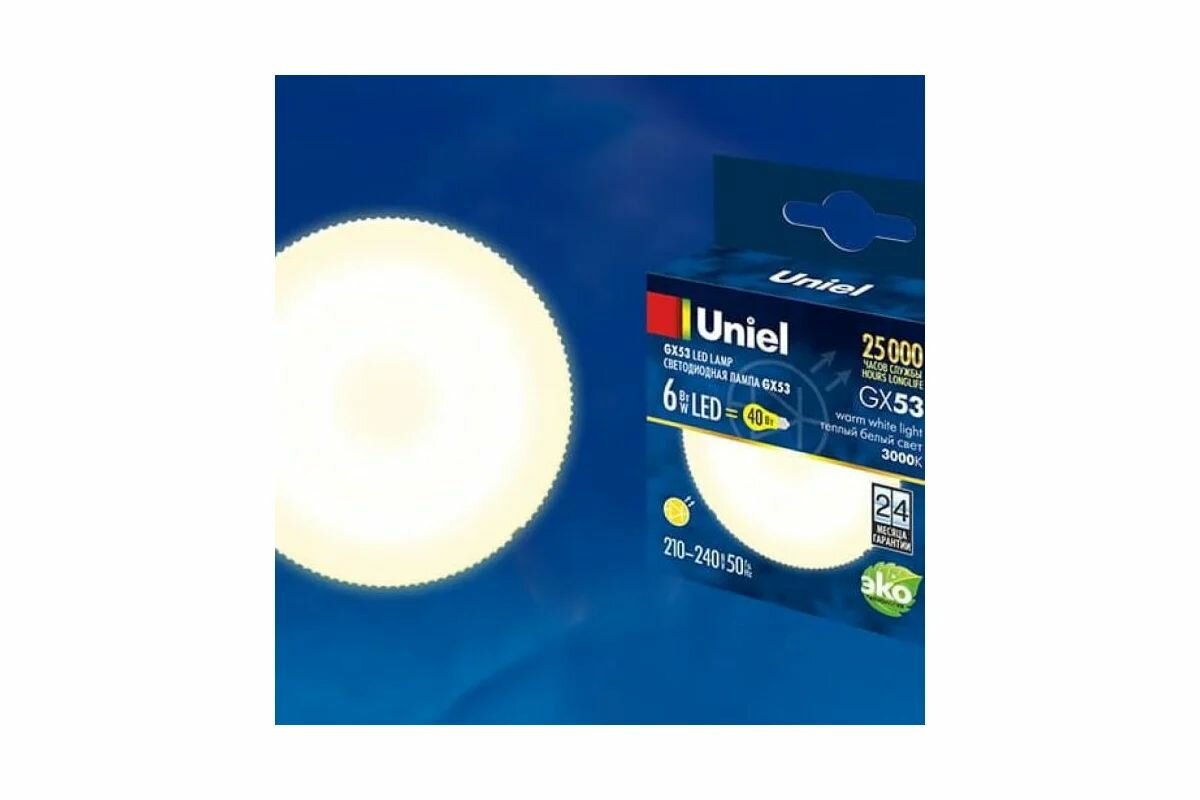 Типы/Лампочки/Светодиодные Uniel LED-GX53-6W/NW/GX53/FR PLZ01WH Лампа светодиодная, матовая. Белый свет. Картон. ТМ Uniel.