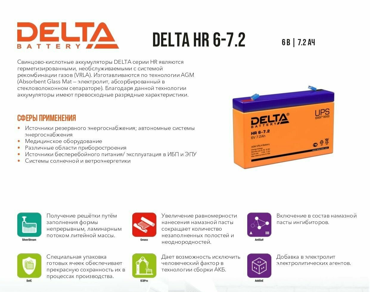 Акб Ибп 6 В 7,2 А/Ч П.п. Delta Hr Agm 151 Х 34 Х 100 Delta арт. HR6-7.2