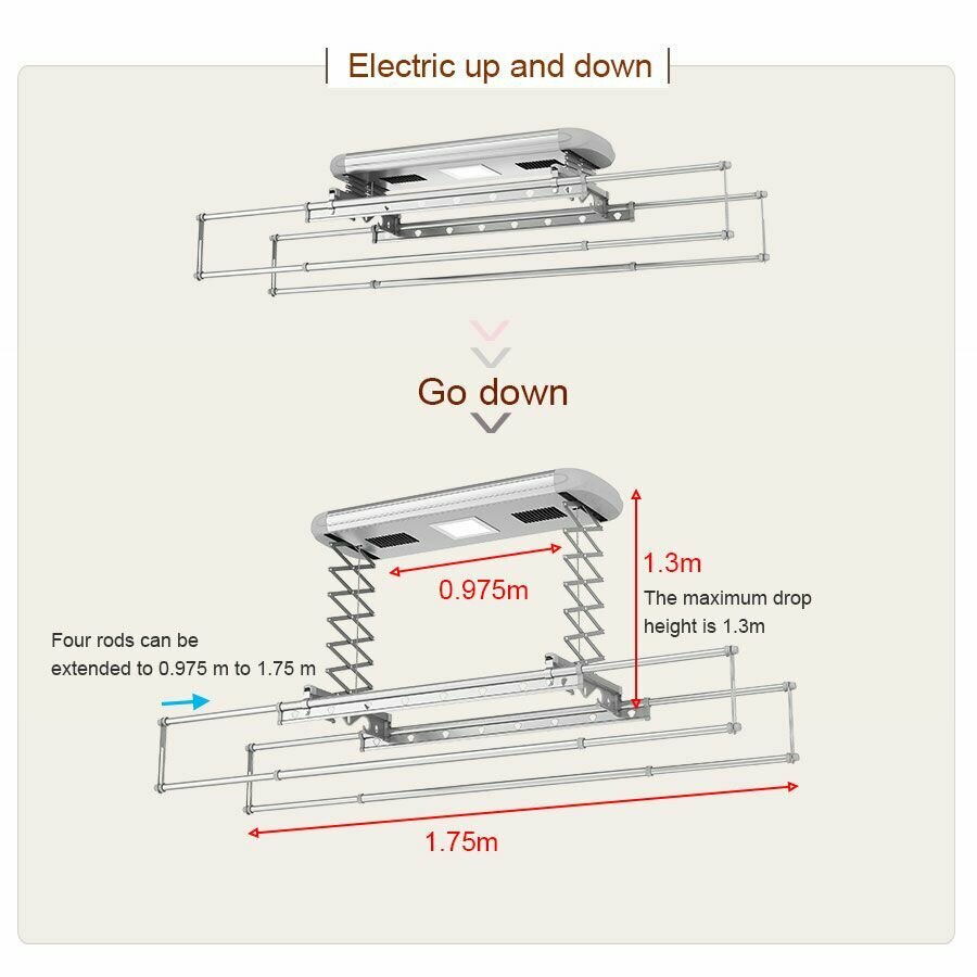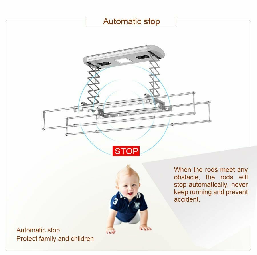 Подвесная электросушилка для белья FOA-JHL002 (130x35x7,6 см) с электроприводом , подсветкой функцией подогрева , вентиляции стерилизации и пультом ДУ